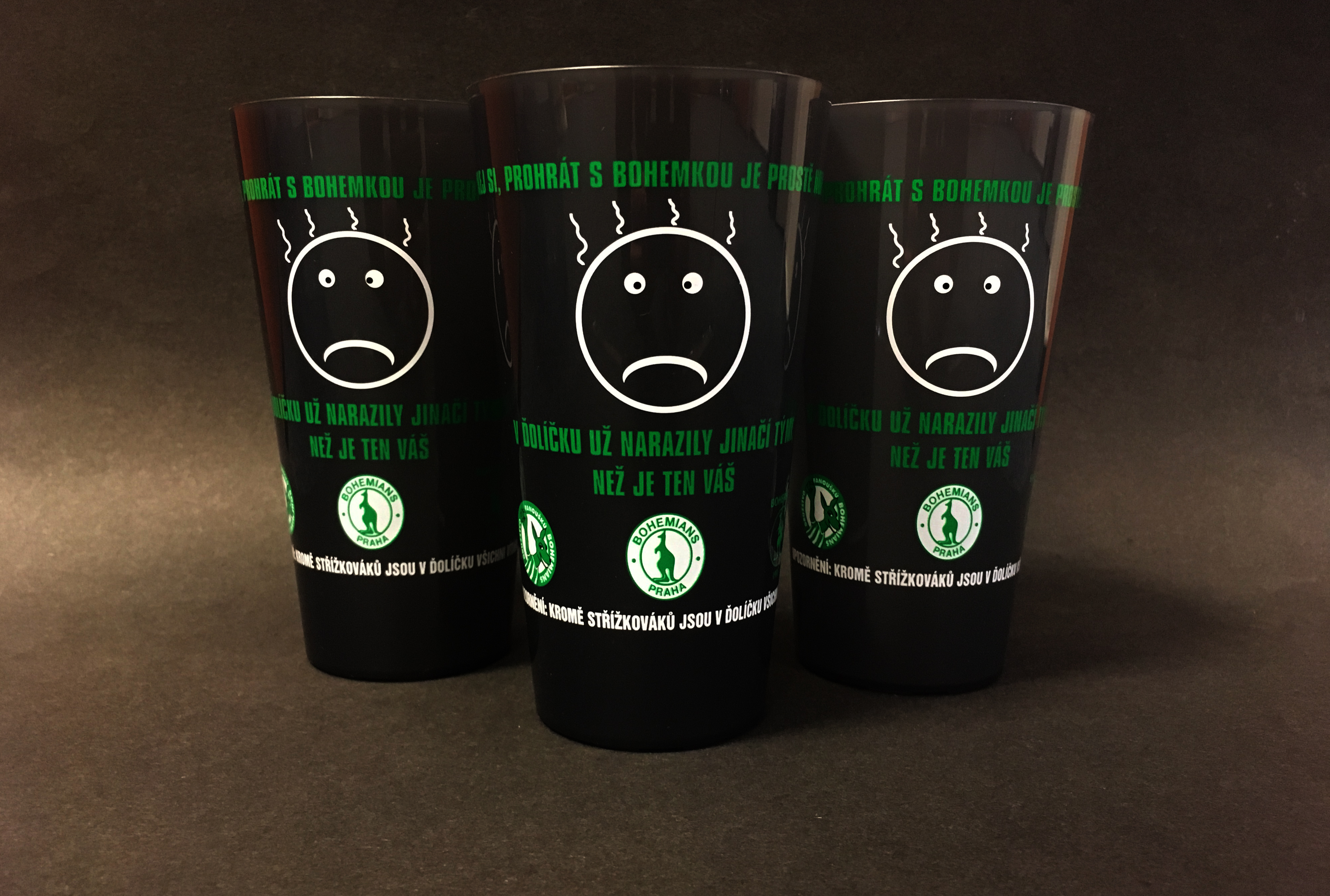 Do prvního „jarního“ utkání v únoru jsme vstupovali ještě s půjčenými čirými kelímky od NickNack, protože se nám nepodařilo správně načasovat výrobu a dodání našich úžasných Bohemáckých. Získávali jsme tím zkušenosti a také poznatky, např. kolik se ušpiní kelímků při utkání v zimě. (je to o 1500 – 2000méně, než v letě)